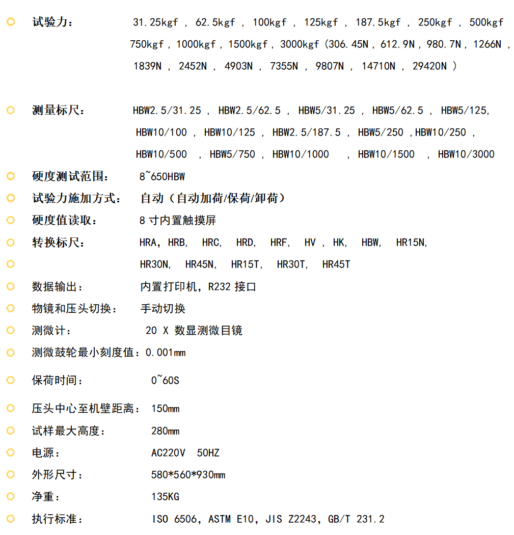 01本儀器具備11級試驗力,15種布氏硬度的測試標尺,14種轉換標尺,適用于測試各種金屬材料